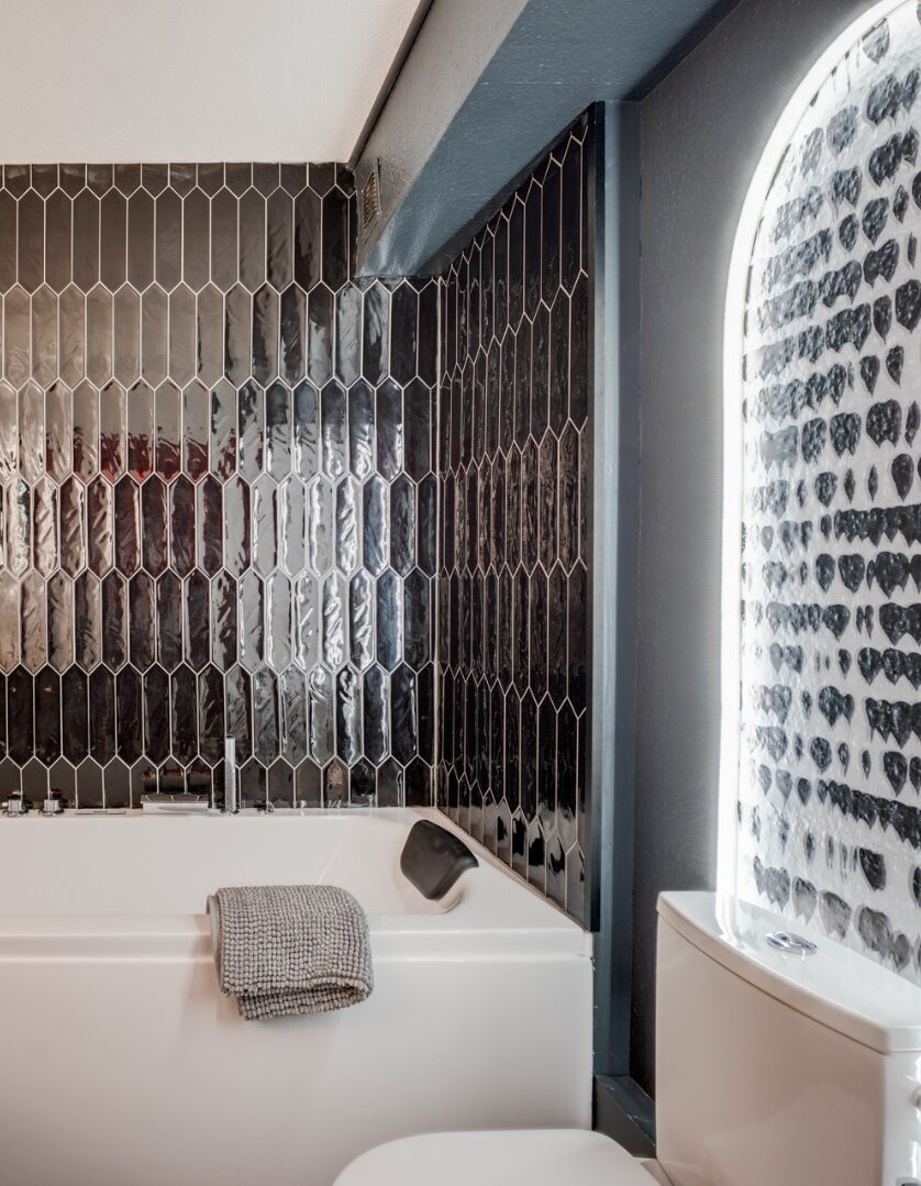 Salle de bains moderne avec carrelage en hexagone, architecte intérieur Toulouse.