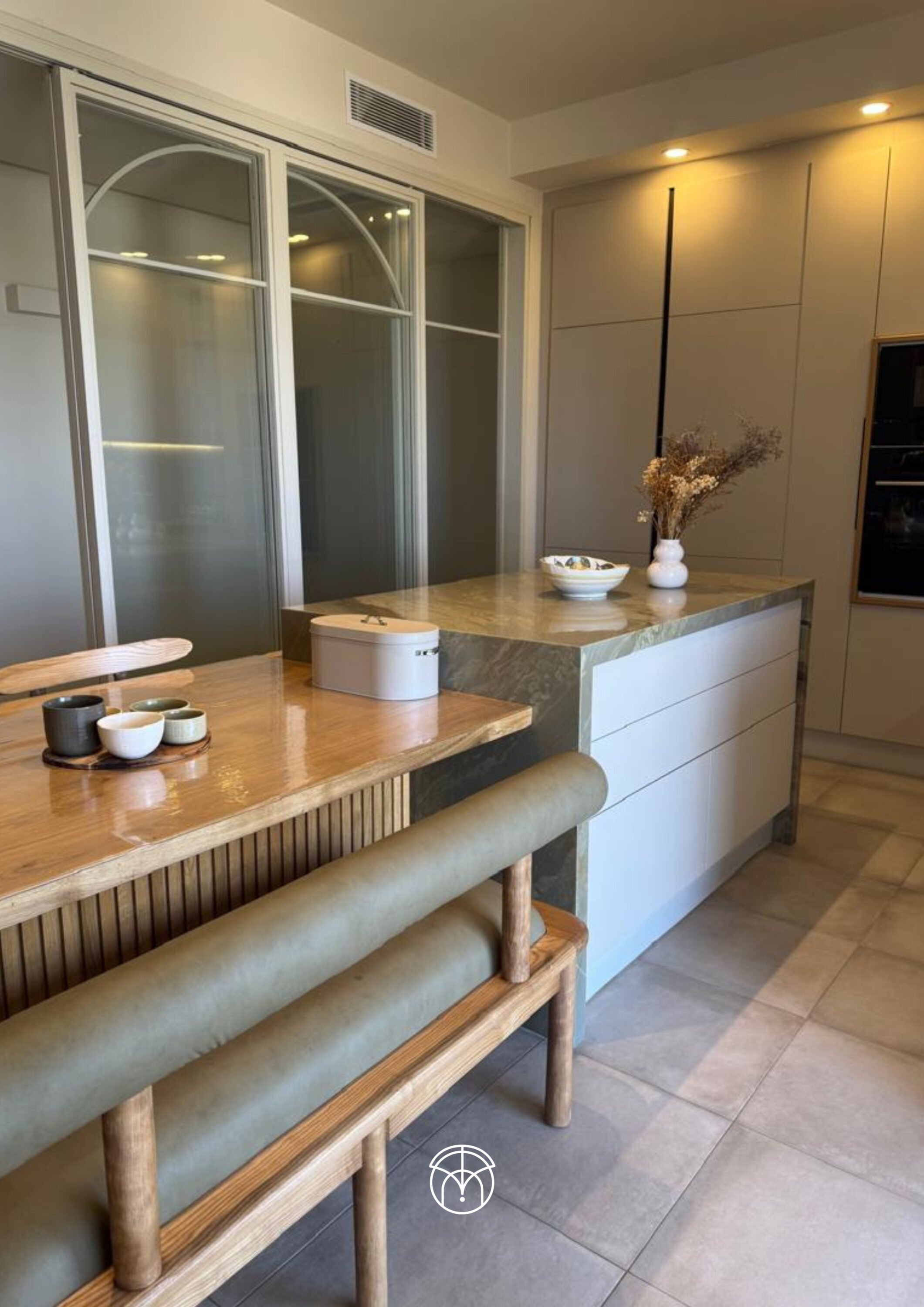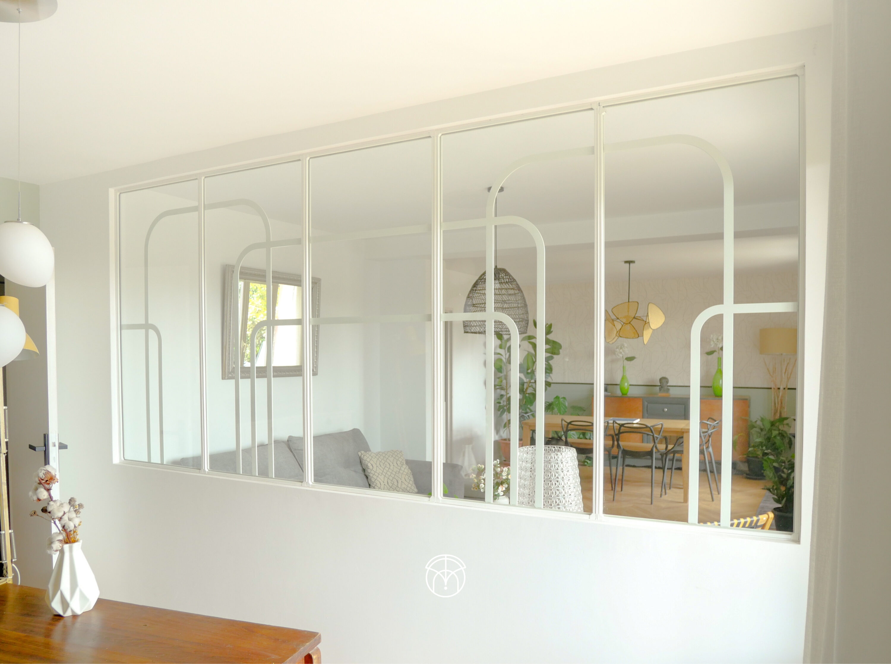 Elle est très utilisée pour séparer généralement la cuisine d’une autre pièce. C’est le style de verrière que vous verrez avec un peu de mur en bas, et du verre en haut. Si vous voulez cacher un peu le bazar qui se trouve de l’autre côté de la pièce où sont généralement installés vos invités, ou encore si vous désirez tout simplement préserver un peu d’espace intime de l’autre côté de la pièce, optez pour ce style !